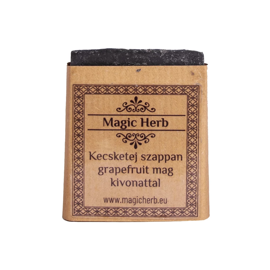 Grapefruitmag olajos (fekete) szappan összetétel: elszappanosított olívaolaj, elszappanosított napraforgóolaj, elszappanosított kókuszolaj, kecsketej, kamilla maceratum, shea vaj, ricinusolaj, orvosi szén, zöld agyag, teafaolaj