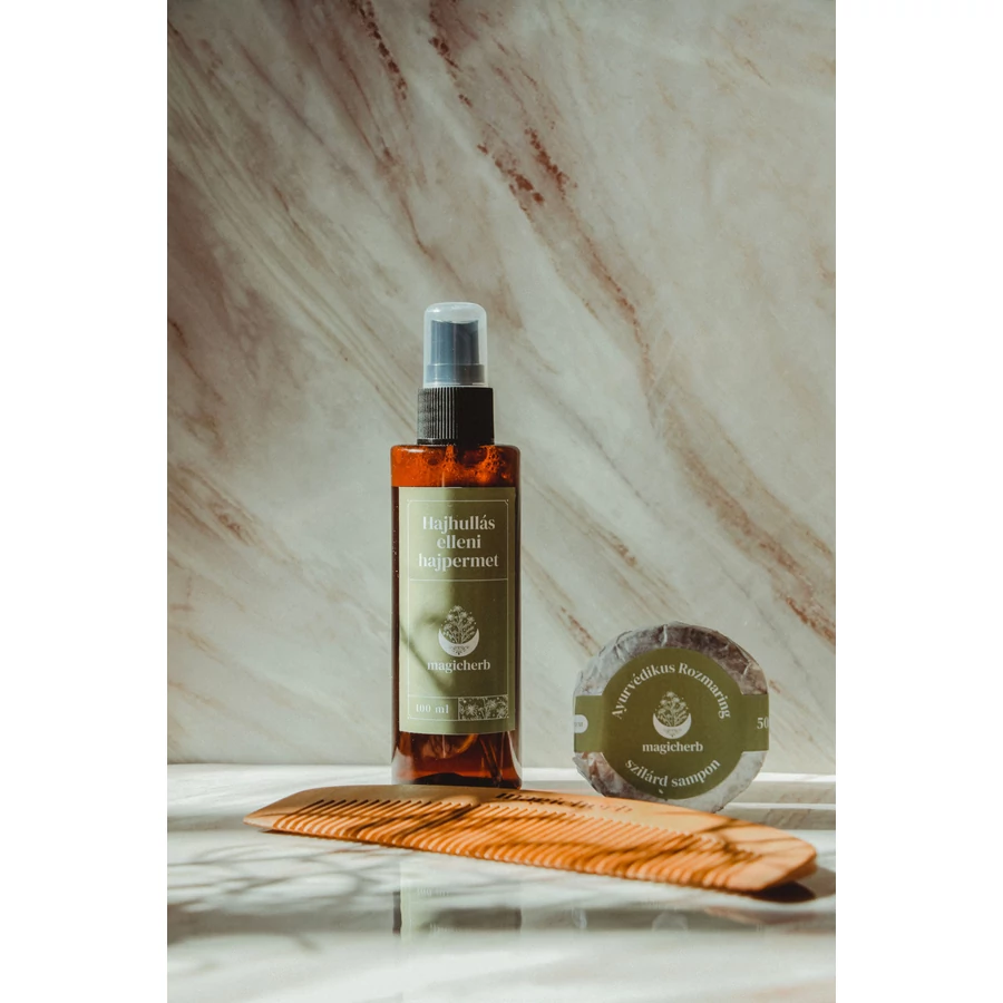 Hajhullás elleni hajpermet rozmaring vízzel és F vitaminnal az egészséges fejbőrért és a dús hajkoronáért.