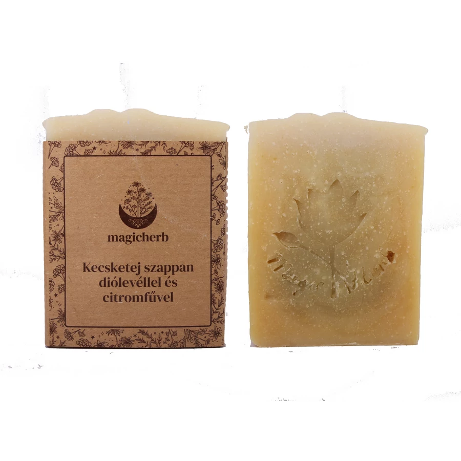 Összetétel: elszappanosított olívaolaj, elszappanosított napraforgóolaj, elszappanosított kókuszolaj, kecsketej, diólevél, citromfű maceratum, shea vaj, ricinusolaj, 100%-os illóolaj