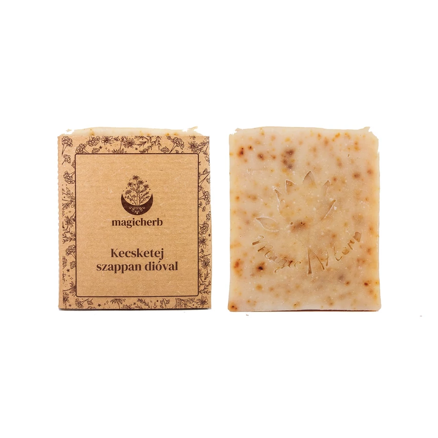 Összetétel: elszappanosított olívaolaj, elszappanosított napraforgó olaj, elszappanosított kókuszolaj, kecsketej, shea vaj, ricinus olaj, darált dió, fahéj illóolaj